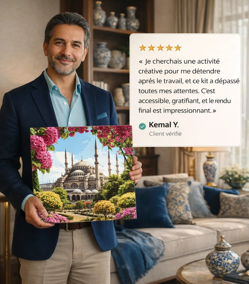 Nos kits de peinture par numéros sont conçus pour être simples et accessibles à tous, même sans aucune expérience en peinture. Chaque zone est numérotée et correspond à une couleur précise : il suffit de suivre les étapes, à votre rythme, et de profiter du moment.